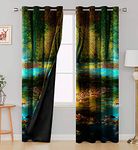 Baocicco Nature-Themed Pattern Blackout Window Curtains Waterfall Creek Tree Foliage Rocks Print Curtain with Grommet Seasonal Forest Landscape Drapes for Living Room Bedroom 2 Panels 42x96 Inch