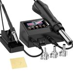 Serplex® 2-in-1 Soldering Station With LCD Display, 600W Hot Air Gun, Adjustable Temperature, Divided Switches, Fast-Heat, 3 Nozzles (5/8/10mm) & Holder, For SMD PCB Electronics Repair & Welding