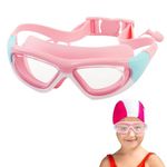 Proberos® Kids Swim Goggles with Ear Plugs, Clear Vision Kids Swim Goggles, Goggles Crystal Clear View with Anti Fog Protection, UV Protection for Boys & Girls Aged 3-16 (Pink)