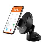 Amkette iGrip Drive Long Arm Premium Mobile Holder for Dashboard with 360 Rotation, Strong Build Quality for Windshield | Telescopic Adjustable Arm and Bottom Foot | Suction pad | Drive Assist App